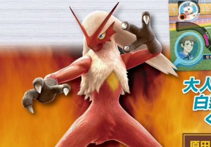 Blaziken, the first Fire/Fighting starter has been confirmed to be one of the playable Pokémon for the fighting game after he was teased way back when the game was revealed, on a screenshot of him facing against Lucario.